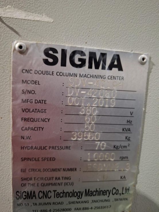 시그마 X축4200 19호 문형머시닝센터 SDV-4219H 중고머시닝센타