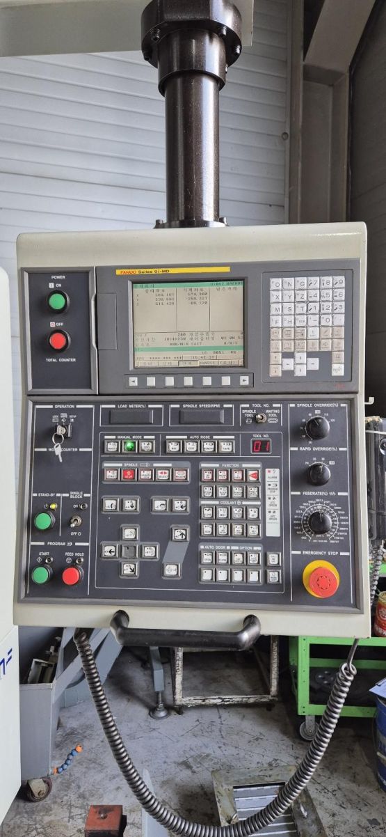 - 규격 FANUC 0i-MD, HD-WIA, 에어블로우, 오토파워오프, BT50, 6000RPM(기어타입), ATC 30EA, 스핀들오일쿨러, 칩컨베이어/칩통