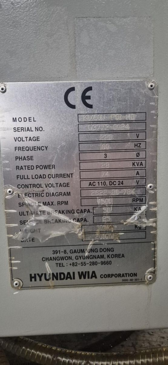위아 6호 머시닝센터 KV60N 중고머시닝센타