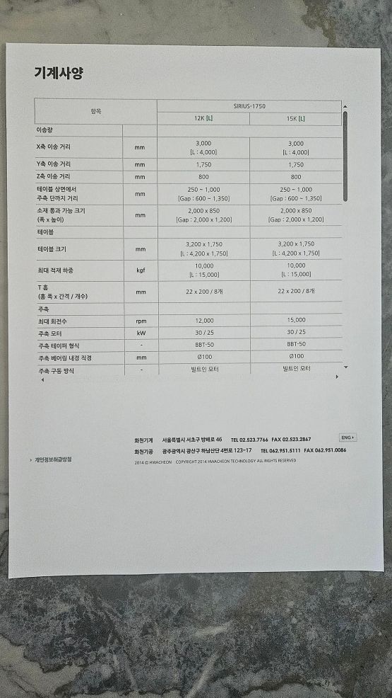 수직 머시닝센타(HWACHEON,SIRIUS-1750L)