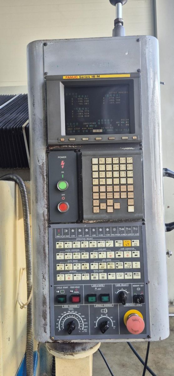 - 규격 FANUC 18-M, HPCC, 데이터서버, 오토파워오프, BT50, 8000RPM(직결식) ATC 8EA, 공구길이측정장치, 스핀들오일쿨러, 칩컨베이어/칩통
