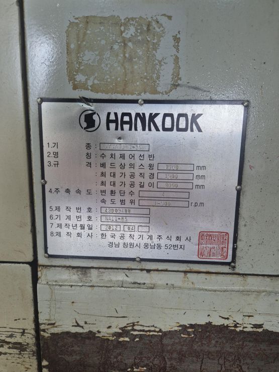 한국 세미 NC선반 1,500x8,000