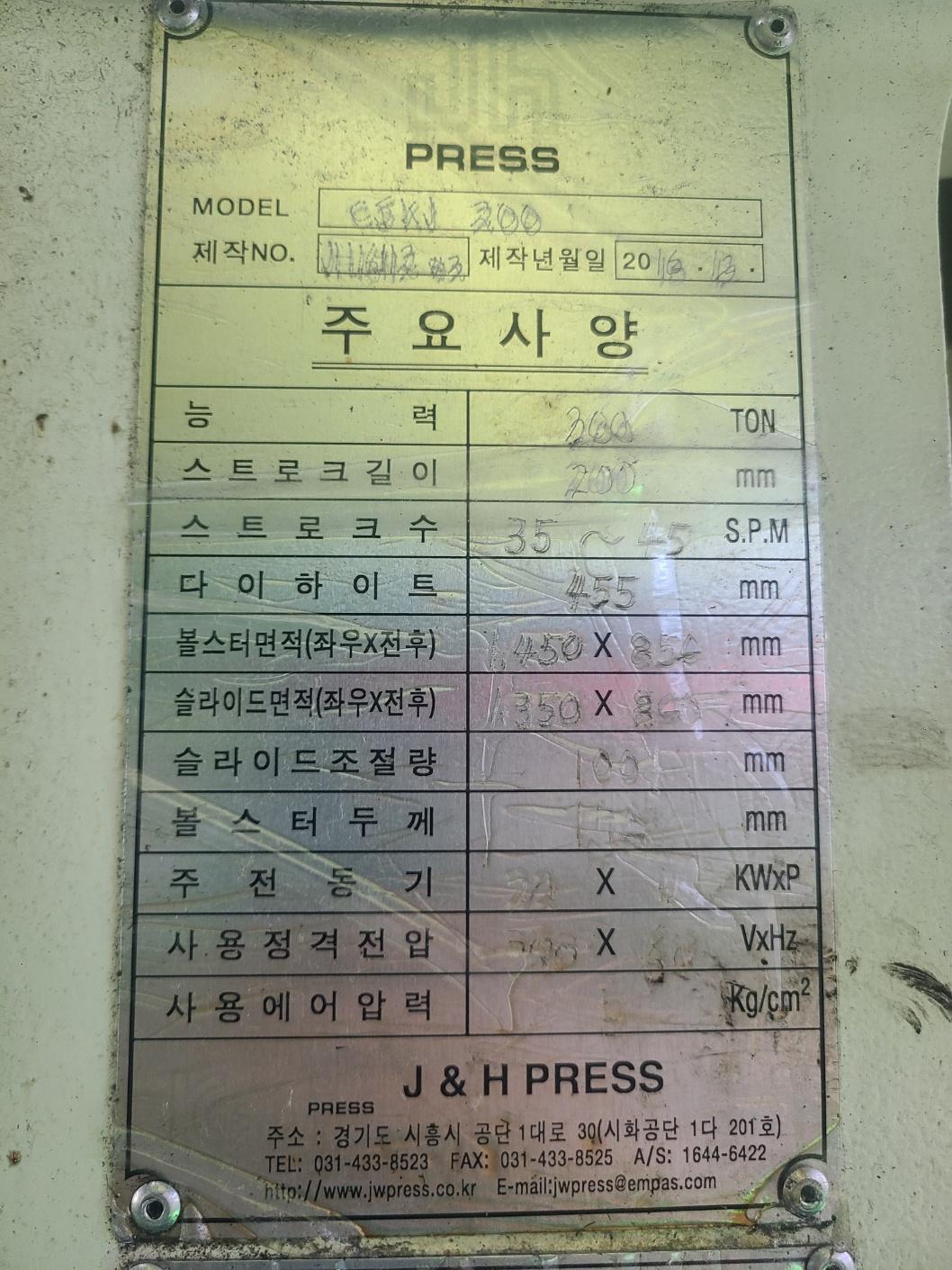 한얼 C형 너클프레스 200톤 (2016년 12월) 동일사양 2식