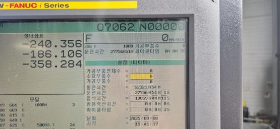 - 규격 FANUC 0i-MD, 데이터서버, 오토파워오프, BT40, 8000RPM, ATC 30EA, 스핀들오일쿨러, 칩컨베이어/칩통
