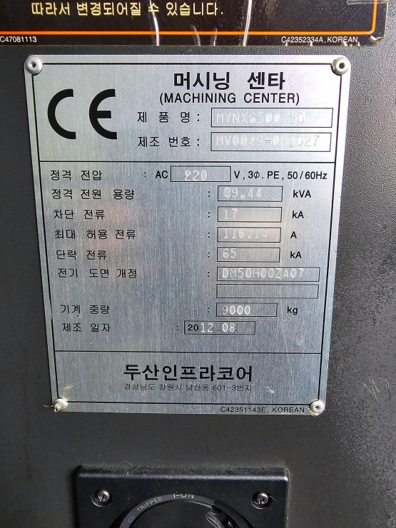수직 머시닝센타 (DOOSAN,Mynx 6500/50)2012