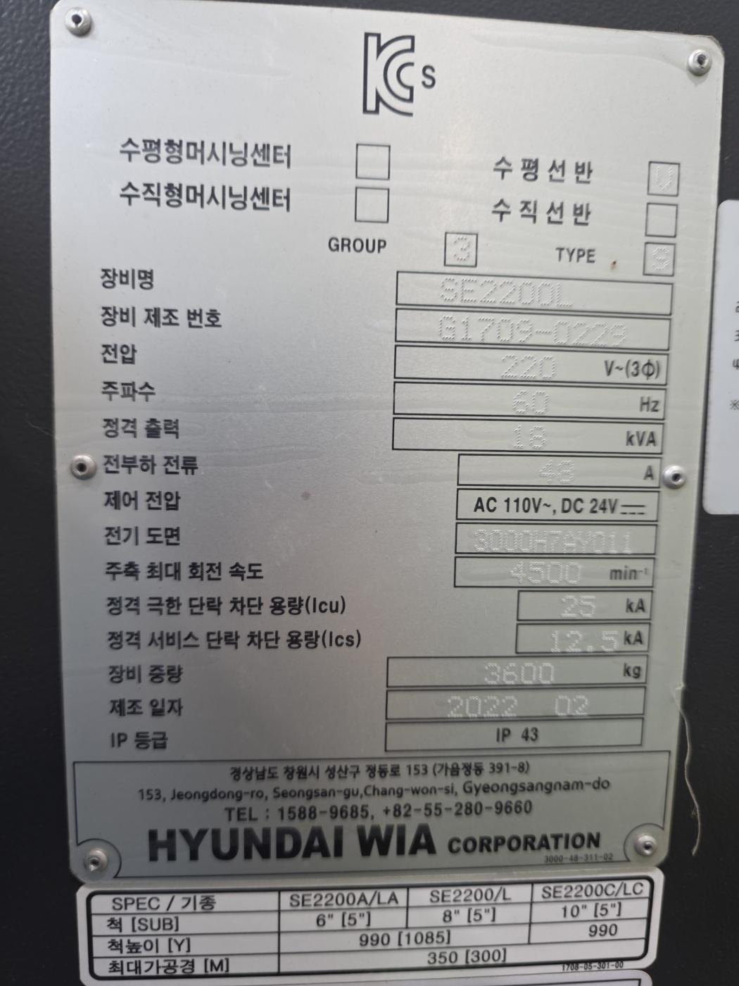 현대위아 CNC선반 8인치 SE-2200L (2022년 2월/ 2022년 6월) 동일사양 2식