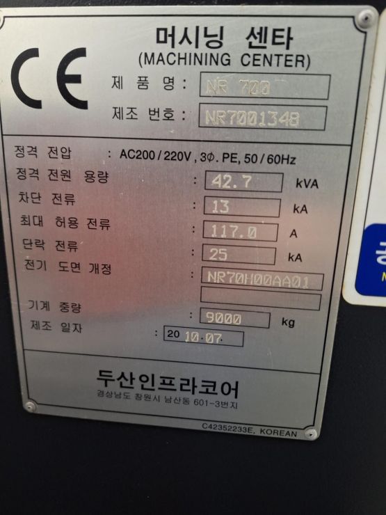 두산 7호 머시닝센터 NR700 중고머시닝센타