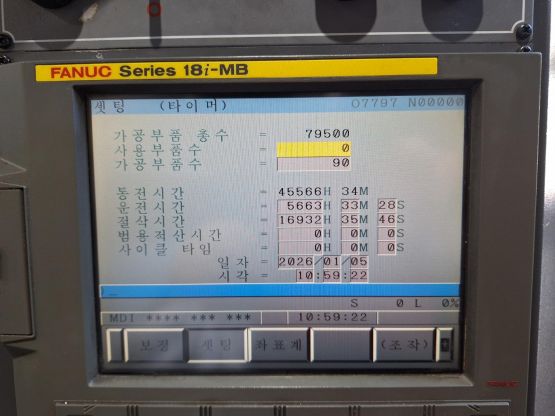 - 규격 FANUC 18i-MB, AINANO, 데이터서버, 에어블로우, 오토파워오프 BT40, 12000RPM, ATC 30EA, 스핀들오일쿨러