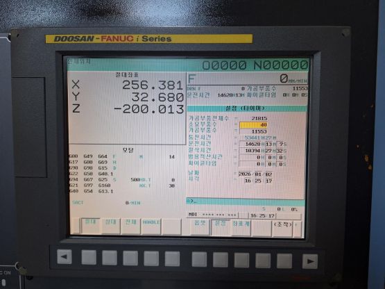 - 규격 FANUC 0i-MD, BT40, 8000RPM, ATC 30EA, 스핀들오일쿨러, 칩컨베이어/칩통
