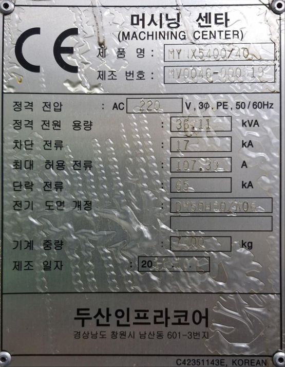 두산 5.4호 머시닝센터 MYNX5400 중고머시닝센타