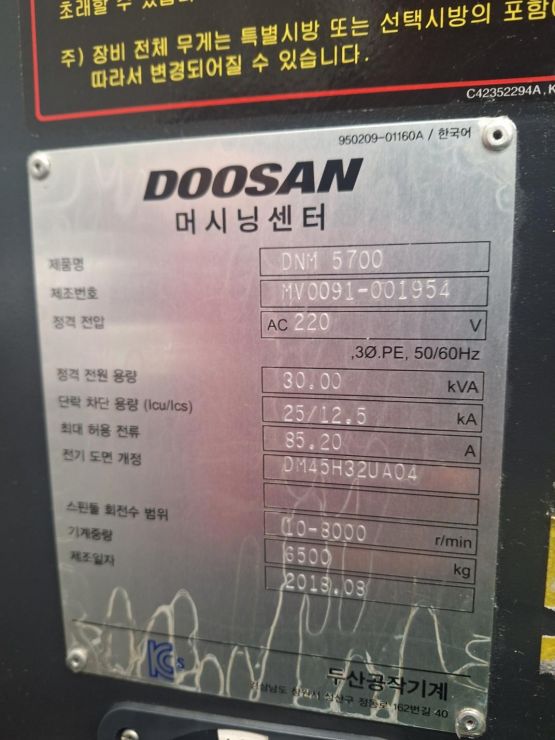 두산 5.7호 머시닝센터 DNM5700 중고머시닝센타