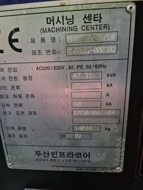 두산 머시닝센터7,5호(MYNX7500/50)