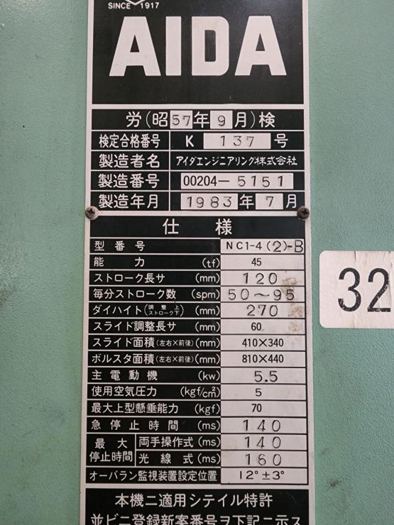 아이다프레스 45톤 입니다.