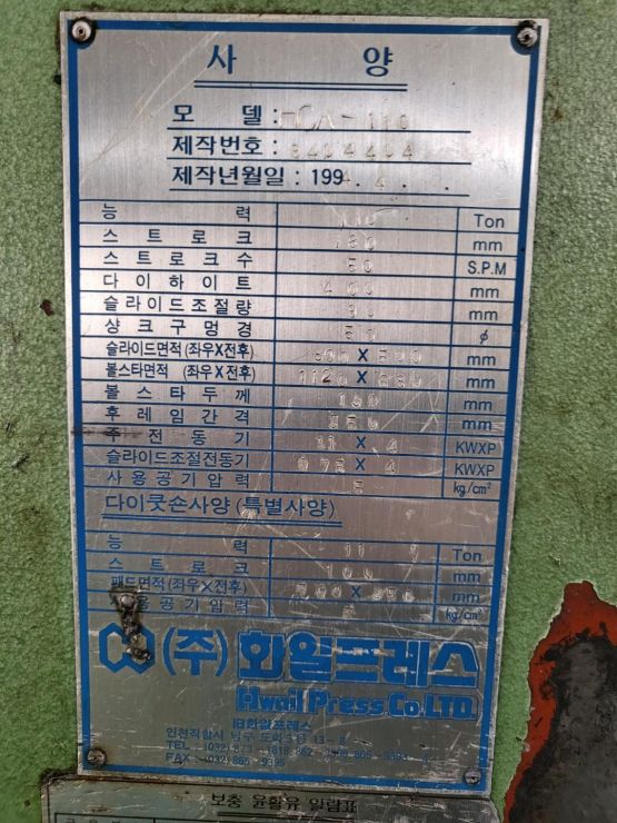 "(주) 세광기계" HCA-110 T 화일 프레스 판매 합니다.