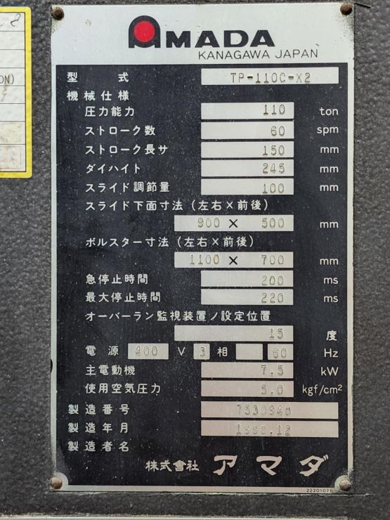 '(주) 세광기계' TP-110톤 아마다 프레스