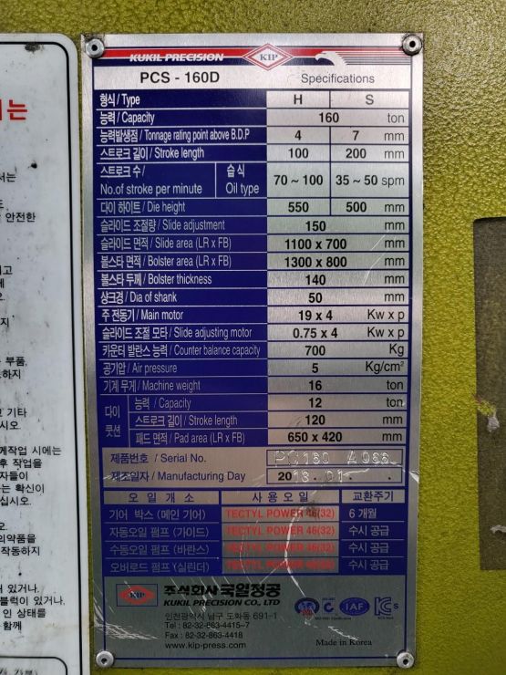 '(주) 세광기계' PCS - 160톤 국일 프레스