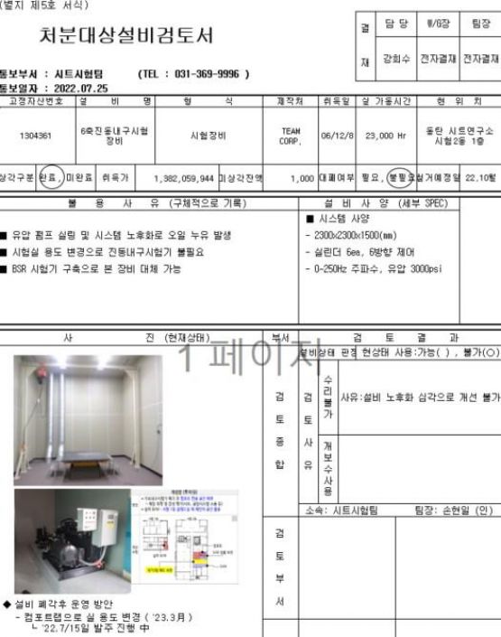 2. 해당장비의 처분대상설비검토서는 현대자동차 그룹 VAATZ 유휴자산 관리 경매공고에서 확인 가능