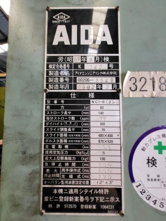 - 제조회사 AIDA ( 아이다 )