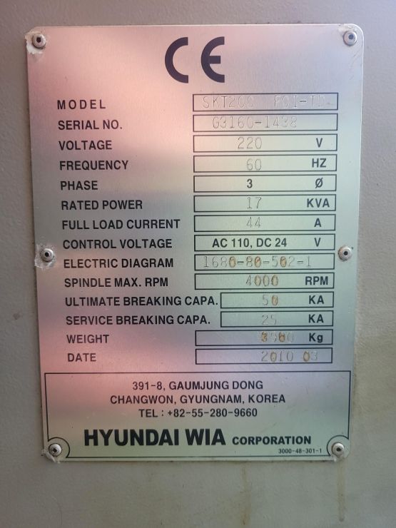 장비명 : SKT200, 8인치 선반